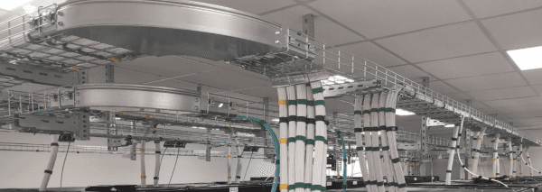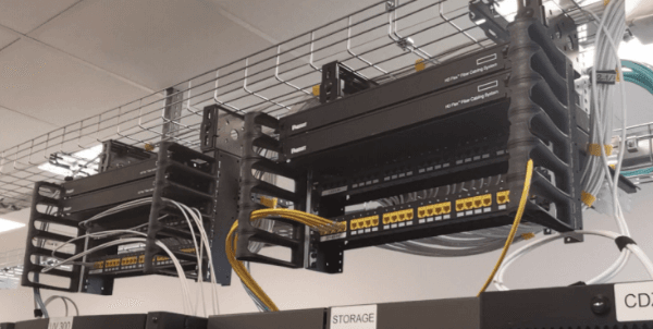 Le guide-câble horizontal grande capacité NetManager et le rack de distribution aérien PanZone Panduit offrent une plus grande accessibilité et une meilleure utilisation de l’espace.