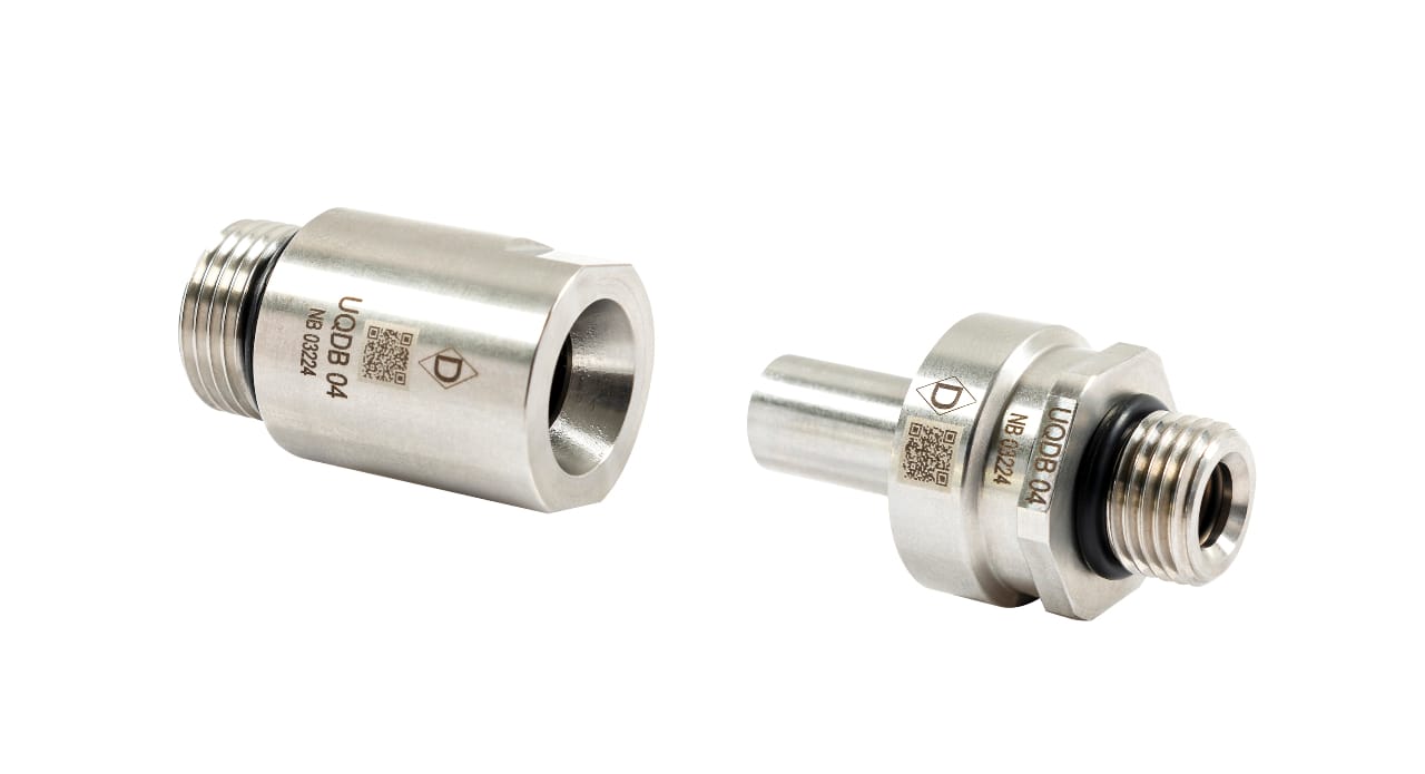 Chaque raccord UQDB produit par Danfoss est soumis à un test de fuite à l’hélium pour garantir sa fiabilité. Pour plus de tranquillité d’esprit, un code QR est imprimé sur les moitiés mâle et femelle de chaque raccord pour simplifier l’identification et le suivi tout au long du cycle de vie du produit.