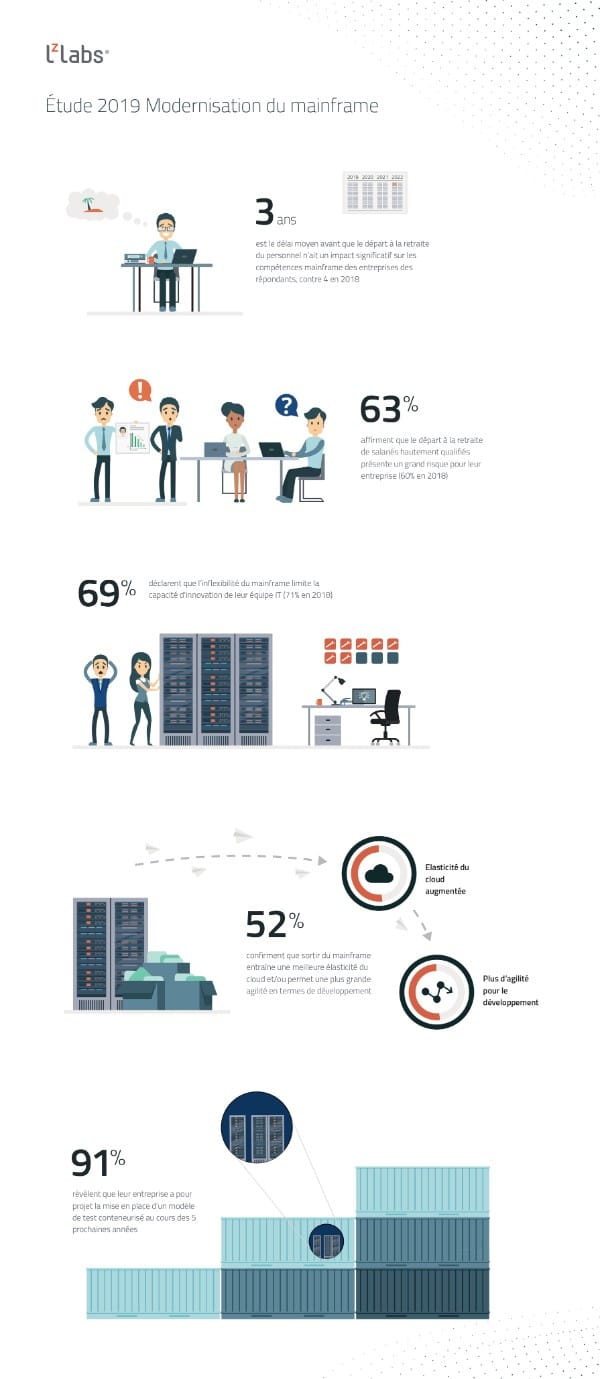 Cette infographie vient en complément de l’article « Avenir des applications mainframe : plus de 90 % des décisionnaires IT inquiets » paru le lundi 04 novembre 2019.