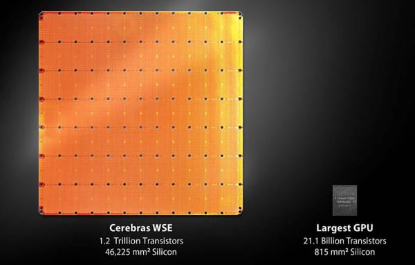 Cerebras Systems développe une plateforme d’inférence d’IA ultra rapide, qui repose sur un wafer (la galette sur laquelle sont ‘imprimés’ les transistors des processeurs) sur lequel s’exécutent en parallèle et à très grande échelle les requêtes d’IA. Cette technologie prend le nom de Wafer Scale Engine 3, elle s’appuie sur 4 milliards de transistors, 900 000 cœurs d’IA et surtout 44 Go de SRAM.