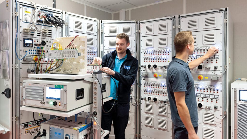 En outre, Socomec propose une offre de prestations d’essais à des clients externes, notamment des secteurs de l’énergie et du nucléaire. Qu’ils viennent tester l’intégration de produits issus de l’entreprise alsacienne dans leurs propres solutions ou qu’ils sollicitent le laboratoire pour expertiser des équipements tiers, tous bénéficient de l’expertise reconnue des équipes internes.