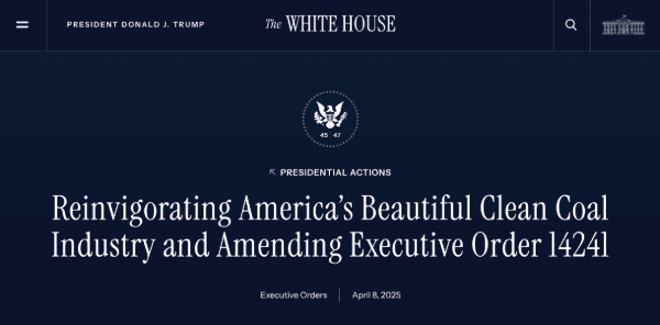 Il a suffi d’un décret exécutif, le 14241(copie PDF en bas de cette page), pour que l’administration américaine, sous l’impulsion du président Trump qui s’est réfugié derrière la consommation de l’IA pour le justifier, face machine arrière sur le charbon, après 25 ans de déclin de ce combustible (qui ne représente plus que 15% du mix énergétique américain) !