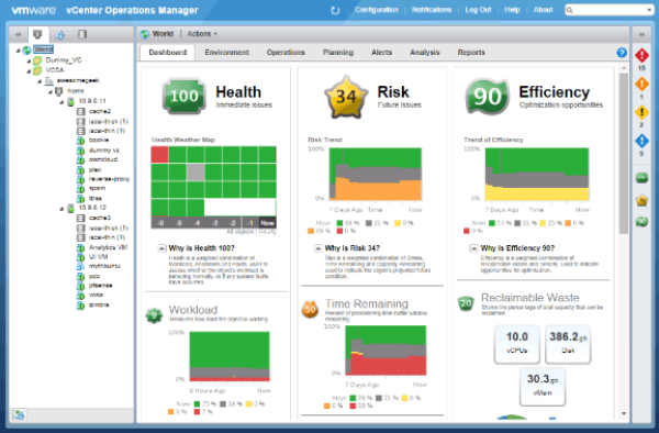 - VMware Cloud on AWS Integration: Delivers consistent operations across on-premises SDDC and VMware Cloud on AWS environments. It auto-discovers new SDDCs and immediately monitors and optimizes their performance, capacity, costs and compliance
